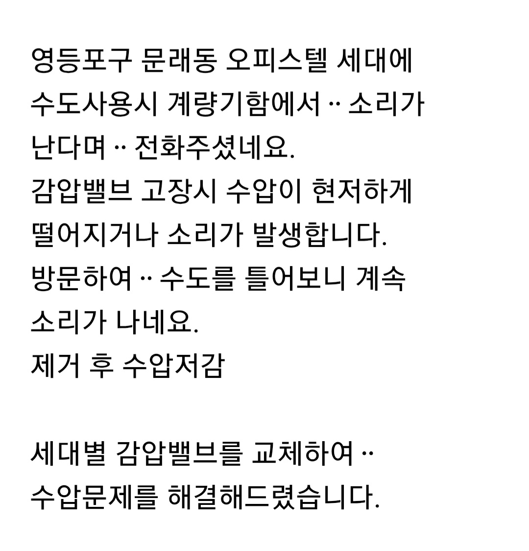 영등포구문래동 세대별감압밸브 온수기안전변 교체요 010~5550~1181정직한서비스! 입니다.#문래동세대별감압밸브#당산동아파트감압밸브#신길동보일러해빙#여의도라디에이터#노량진동수도감압밸브#도림동수격방지기#대방동언수도해빙 카테고리 없음 2025.11.19